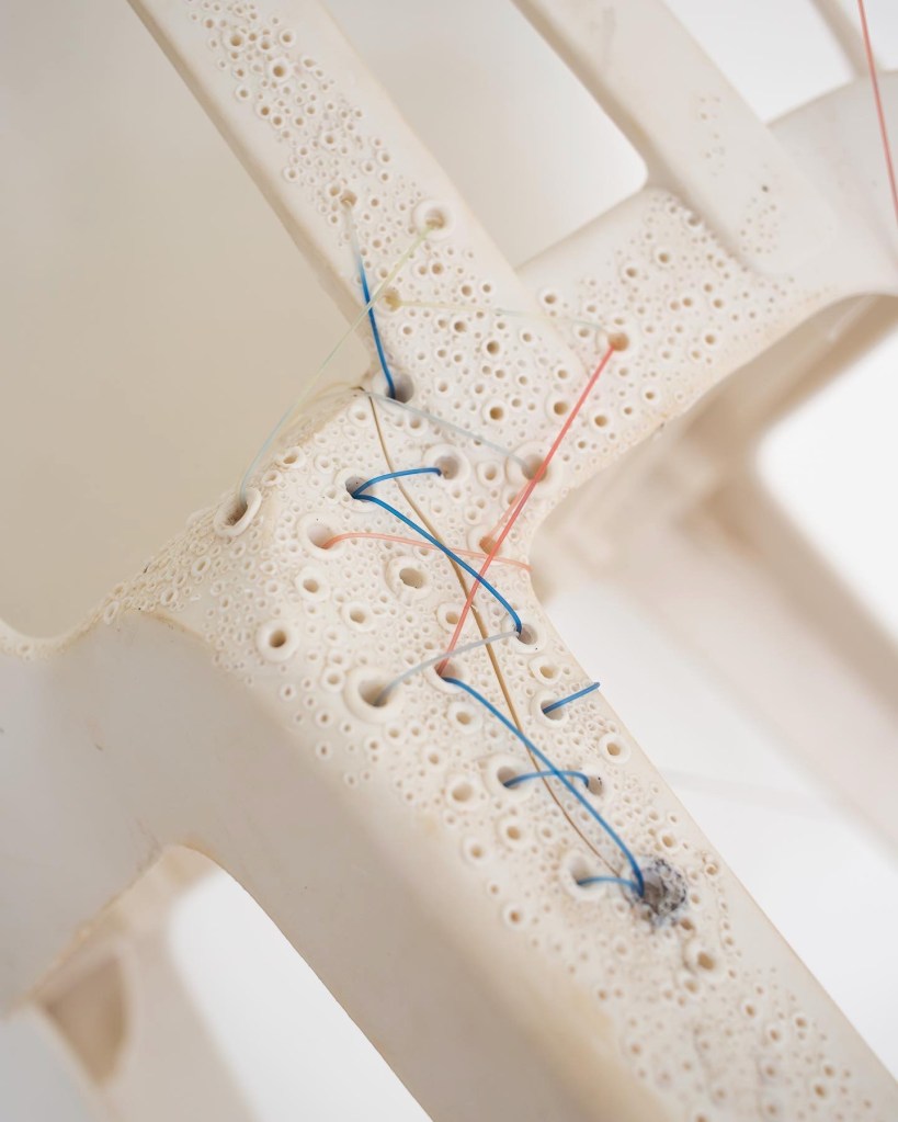 Repairing Memories is the result of four week’s residency at Ateliers ’89 Punto di Beyas Artes in which visible mending techniques were used to repair broken plastic objects. In this case plastic chairs.
